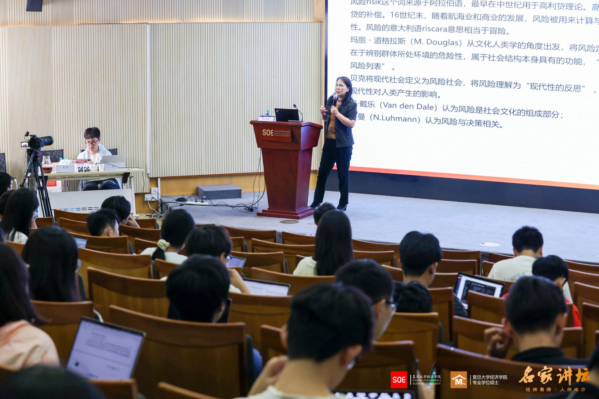 现场的讲座内容结束后,有同学提问:保险本身的逻辑是针对个体风险的,而整个社会随着科技发展它走向了更系统性的整体,在此前提下责任主体难以明确,保险行业未来是否会因此遇到相应挑战。