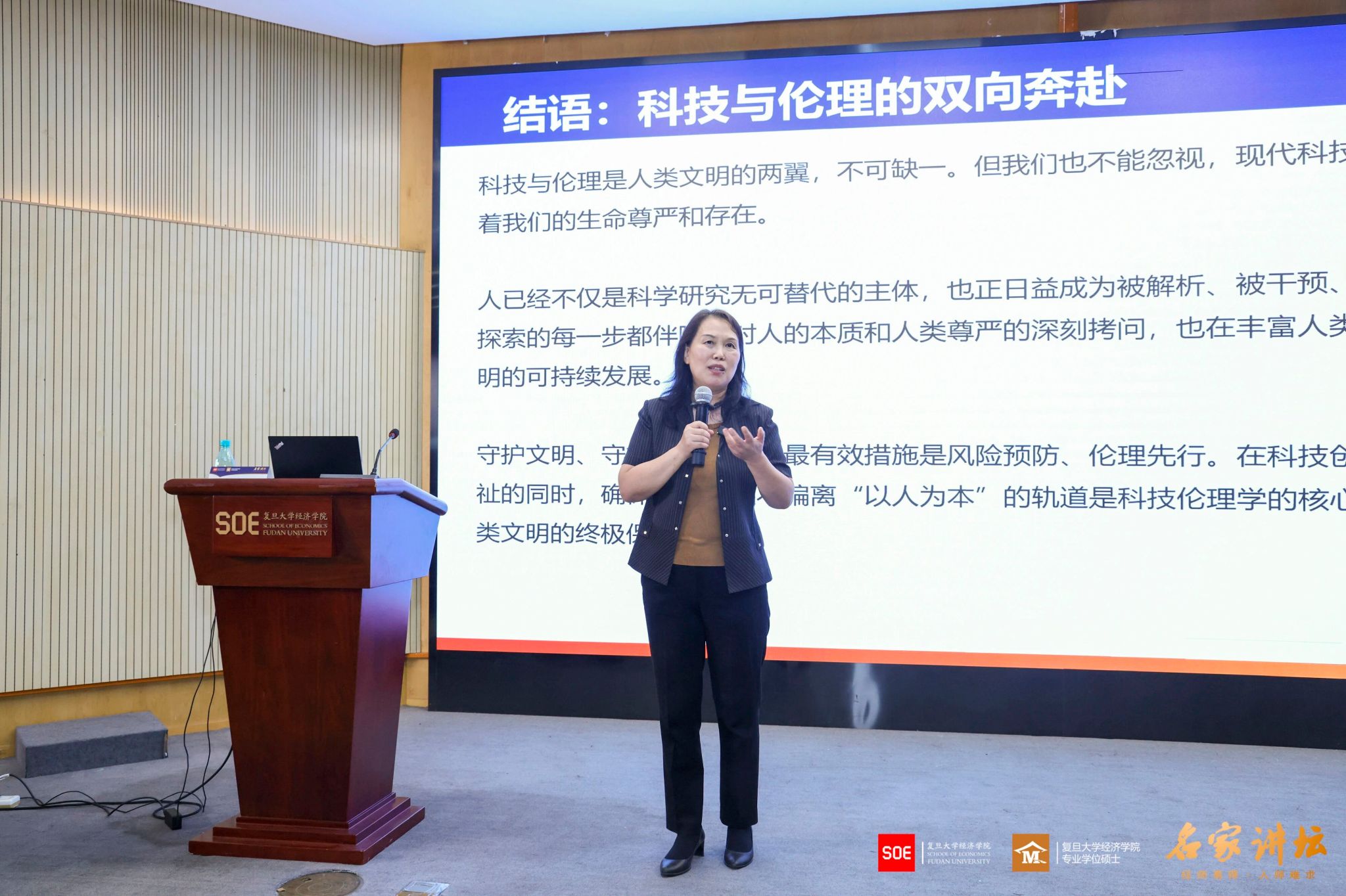 科技与伦理是人类文明的两翼,不可缺一。但我们也不能忽视,现代科技带来的系统性风险正在挑战我们的生命尊严。人已经不仅是科学研究无可替代的主体,也正日益成为被解析、被干预、被优化的对象和客体。科学探索的每一步都伴随着对人的本质和人类尊严的深刻拷问,也在丰富人类文明的同时,威胁着人类文明。——金融专硕王同学