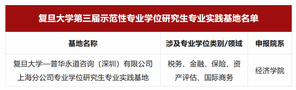 —普华永道咨询(深圳)有限公司上海分公司专业学位研究生专业实践基地”成功入选。