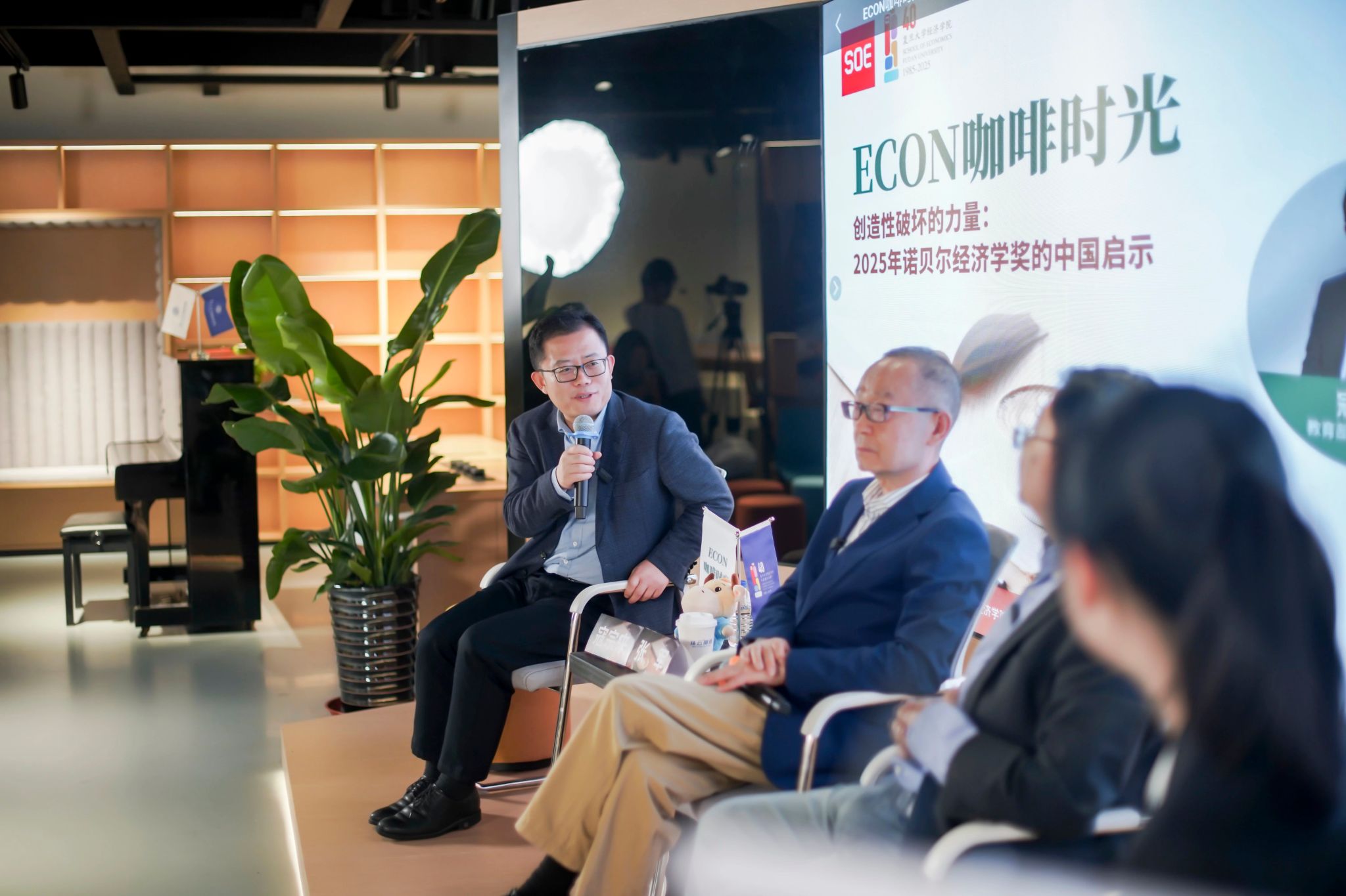 首次推出的“咖啡时光”主题沙龙在温馨雅致的氛围中温馨开启。作为专为本科生量身打造的特色学术活动,本次沙龙打破传统课堂的单向传授模式,以“咖啡为媒、思想为核”,聚焦2025年诺贝尔经济学奖核心主题“创新”,深度契合中国当下创新驱动发展的关键战略。活动特邀著名经济学家、国家级人才、复旦文科资深教授、福利姬
