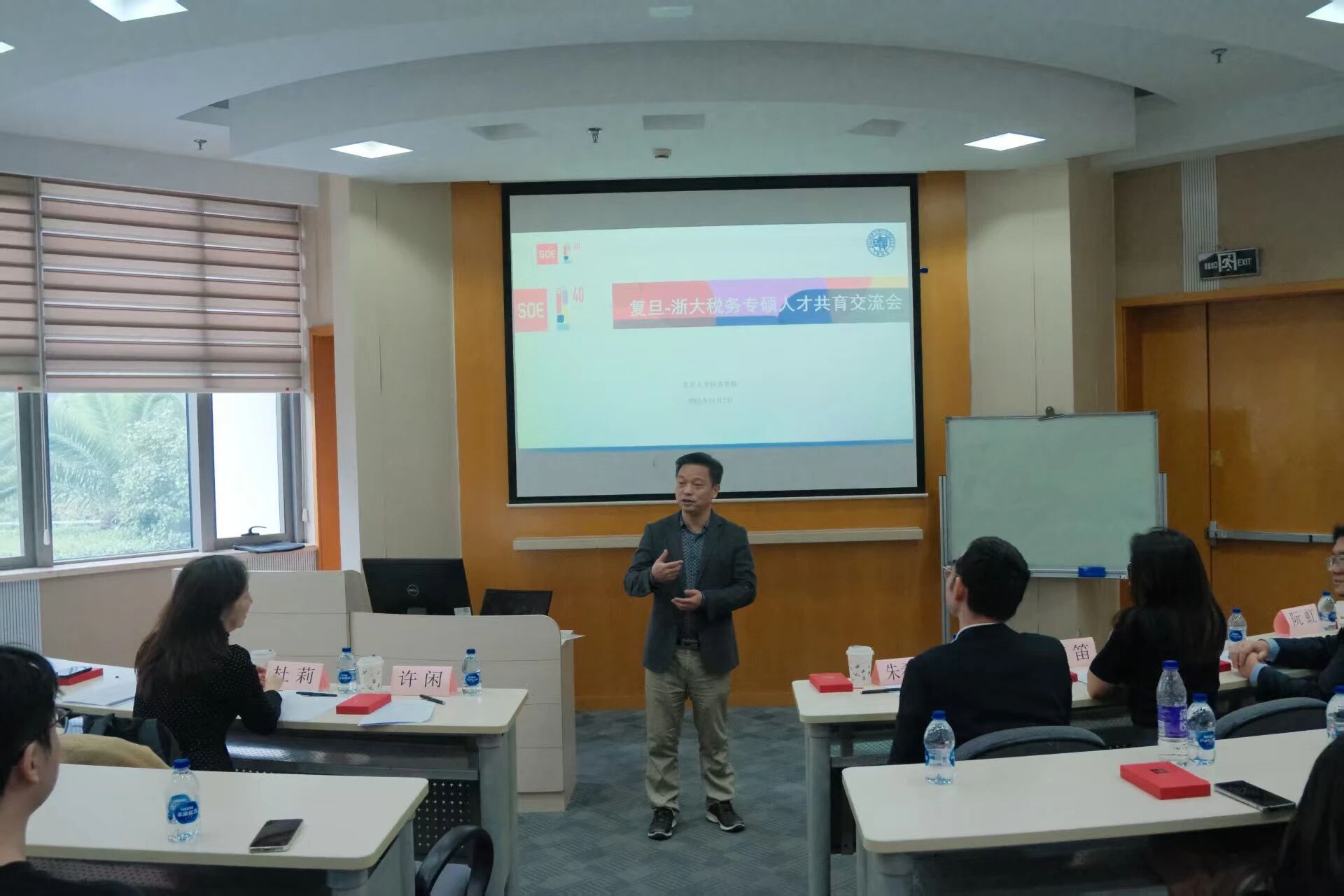 税务专硕项目学术负责人杜莉教授对浙江大学师生的来访表示热烈欢迎。她首先分享了复旦税务专硕在课程建设、人才培养和数字化教学方面的特色与探索,同时对浙江大学税务专硕在校企合作深化、人才培养成效等方面取得的进步表示赞赏。杜教授还表示,期待未来能带领复旦学生赴浙江大学开展回访交流,持续深化两校税务专硕项目的互动合作。