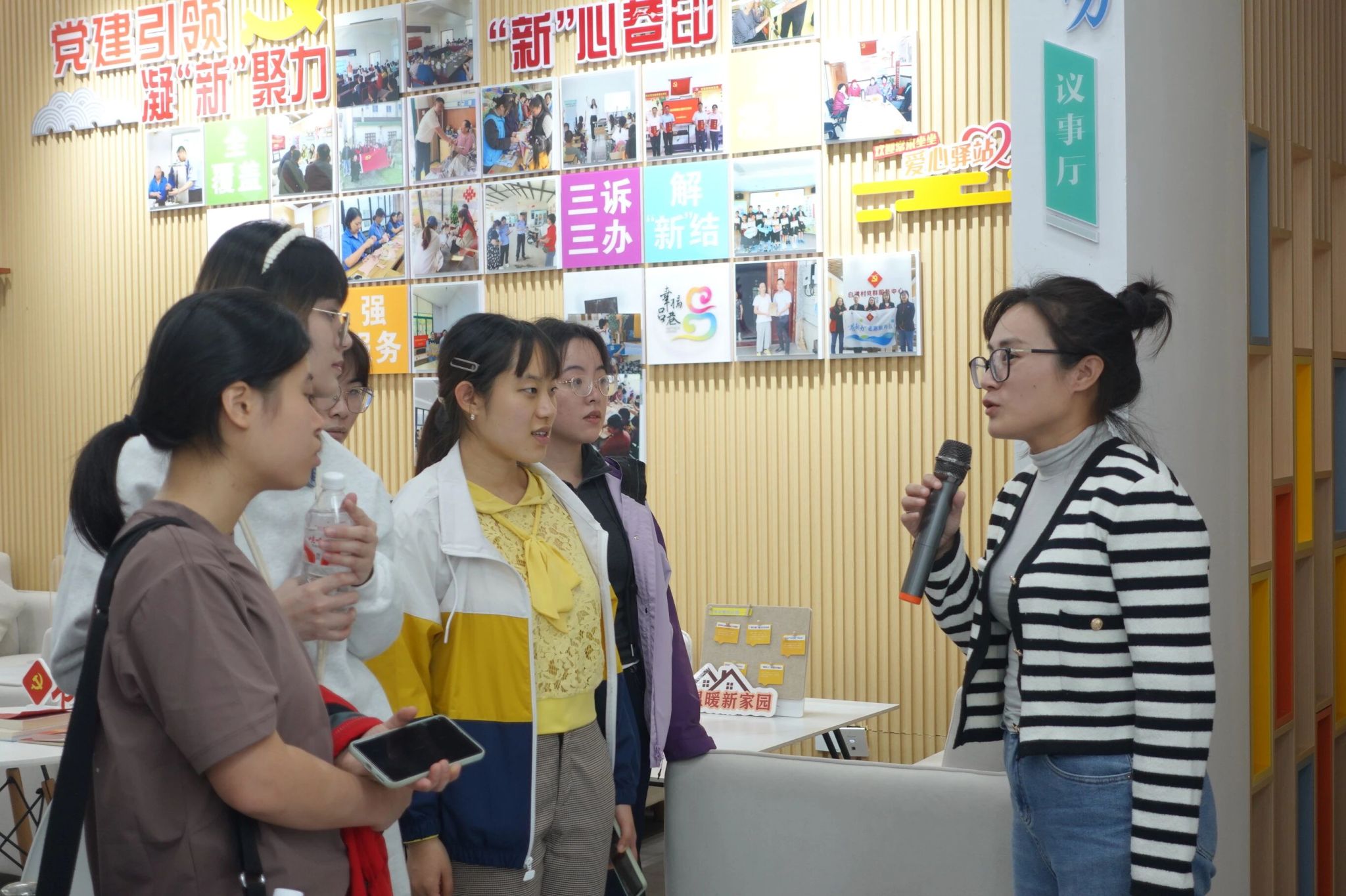 在三个实践地,同学们深切感受到了党建引领在乡村发展中发挥的核心作用。在吕巷镇白漾村,同学们参观了村委会及漾域基地,深入了解了“党建+产业”融合发展的典型做法。和平村党组织通过建立党员责任区、设立党员示范岗,将组织优势转化为发展优势,引领乡村产业发展。