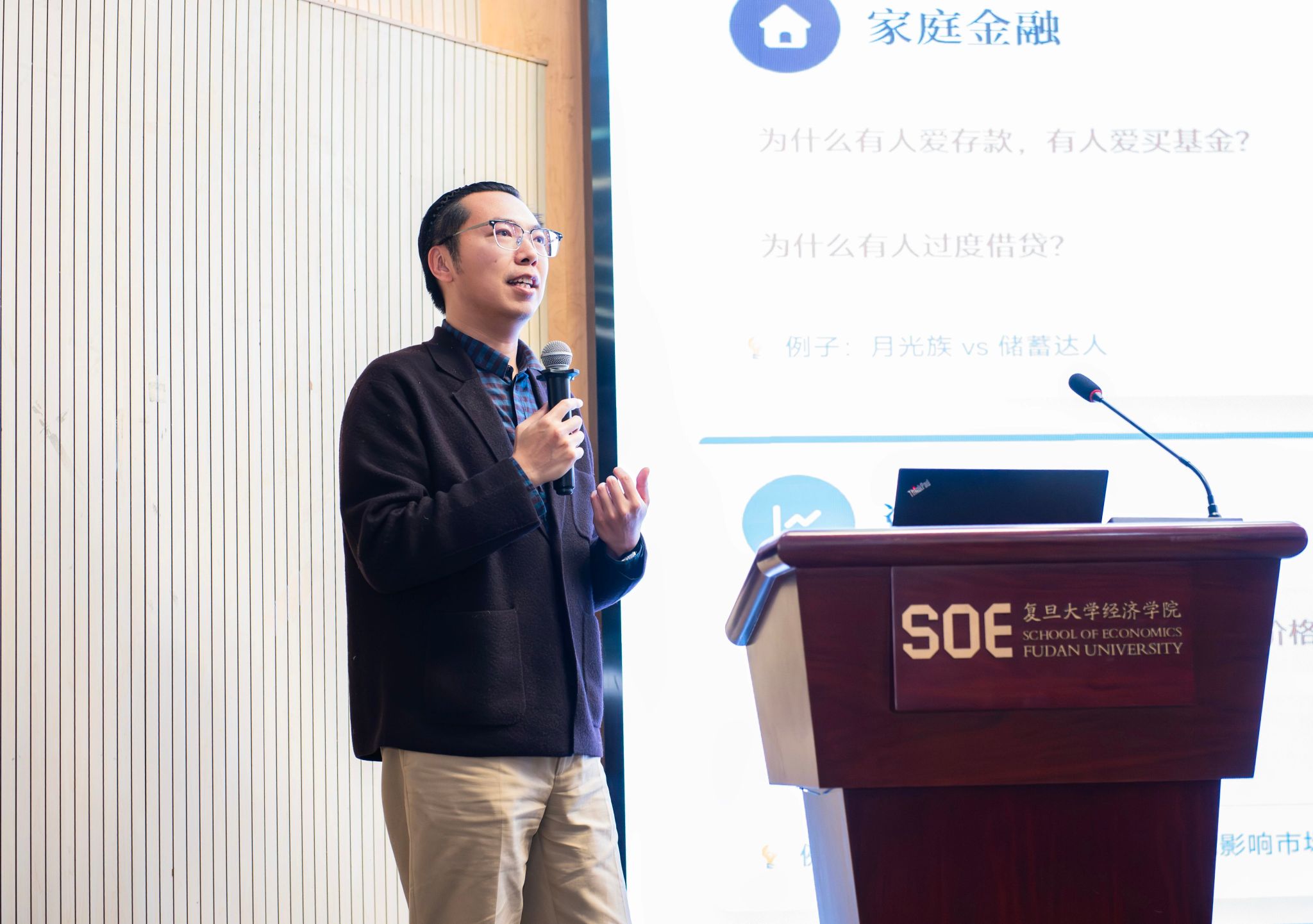 金融研究院江嘉骏老师以“致广大而尽精微——解锁金融学研究新蓝图”为题展开分享,他从自身研究经历出发,为同学们展示了金融学研究从微观到宏观的多元维度,介绍了金融学领域值得探索的诸多问题。他指出,金融学研究并非关注“钱本身”,而是考察人在不确定世界中的选择。金融学既能关注宏大的经济运行,也能聚焦细微的行为机制:从投资者在移动终端上的投资行为,到政府开放数据对企业决策的影响,再到注册制改革对资本市场的效果评估,这些研究展现了金融学从微观到宏观的多元维度。