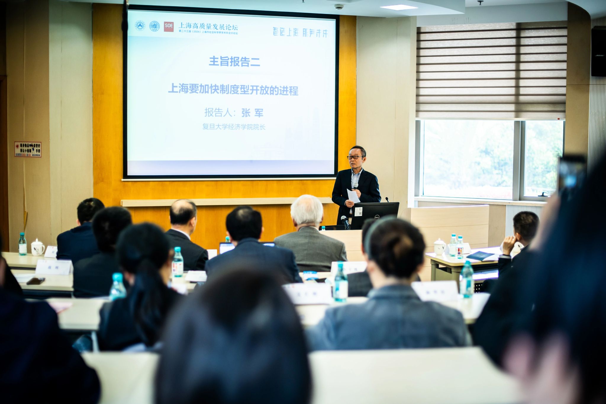 院长张军聚焦制度型开放,认为国际经贸规则正发生根本性变化,建议上海选择临港作为试验载体发展新型离岸经济,建立离岸数据安全港、离岸研发中心和离岸数字服务中心,实现数据跨境自由流动,对接国际法律,推行灵活人才政策,推动服务贸易发展,通过“沙盒实验”探索政府与市场共治的新监管框架。