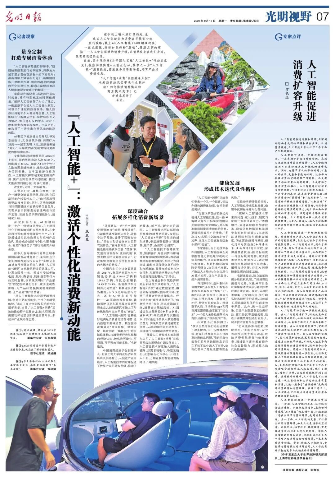 人工智能助推进一步拓展消费场景。一方面,人工智能的发展,让传统经济业态升级。以夜间经济为例,上海世博源通过“AI+商业”的互动体验,打造2025上海夜生活节消费新场景,受到消费者欢迎。另一方面,人工智能的发展,可以催生新的消费场景,如无人机表演等低空经济。近些年来,冰雪经济、银发经济、首发经济等新的经济业态不断发展。伴随人工智能的发展和运用,这些新的经济业态中有望产生消费友好型的场景,产生更大的消费动能。譬如,伴随人口老龄化,智能养老将有很大的市场空间,人工智能有助于打造更多与此相关的消费场景。