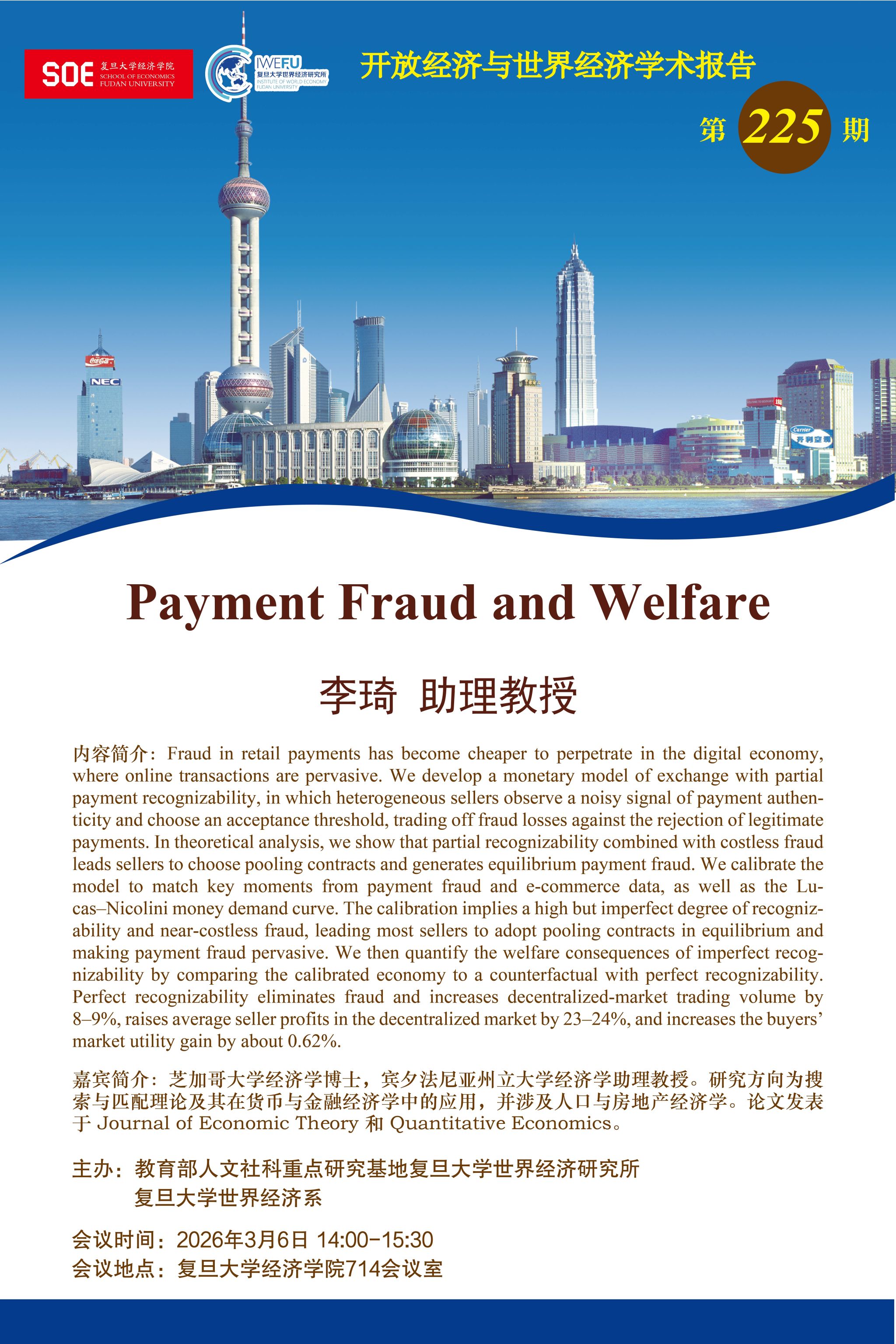 福利姬 世界经济研究所开放经济与世界经济学术报告第225期:Payment Fraud and Welfare