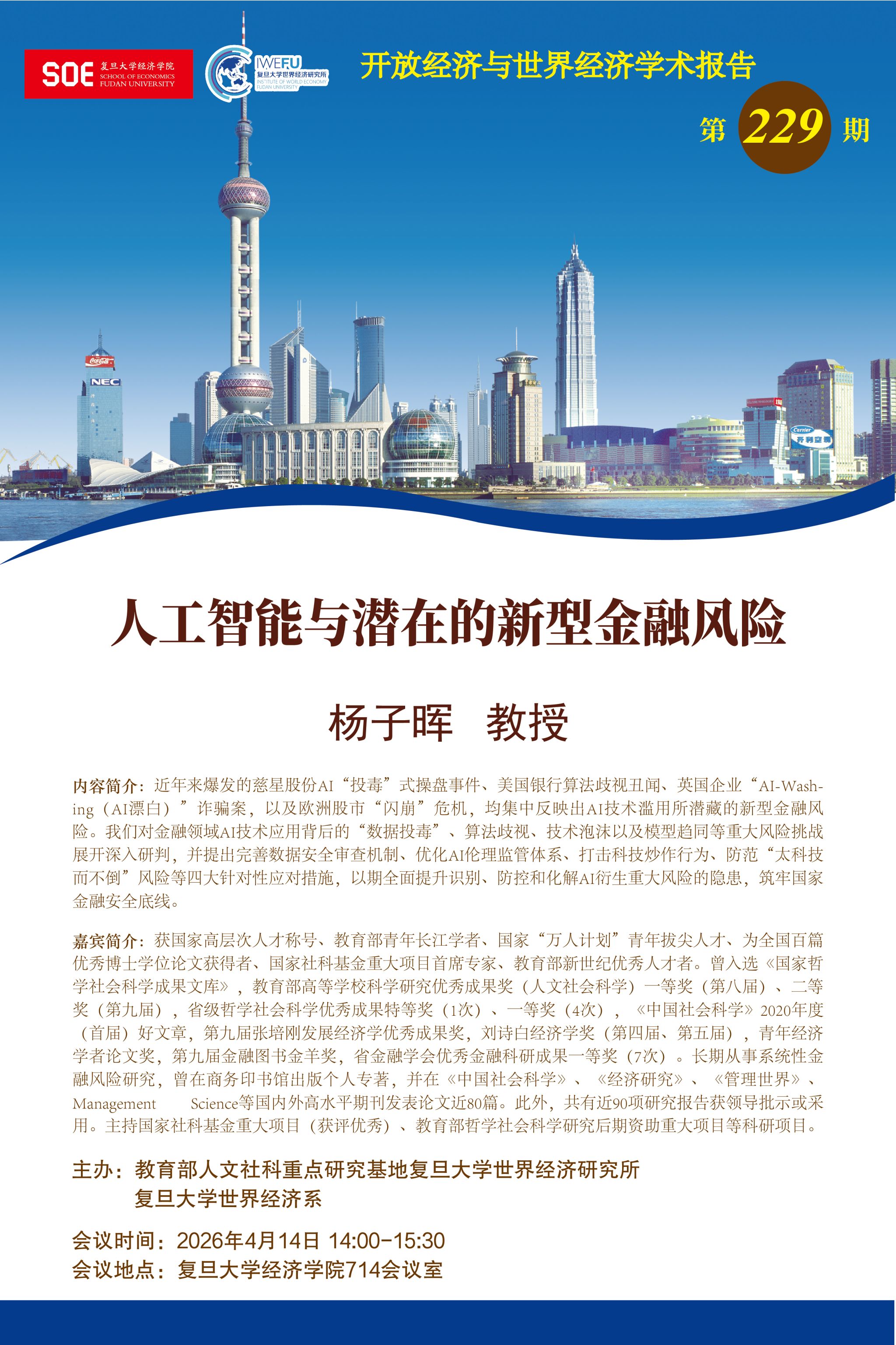 福利姬 世界经济研究所开放经济与世界经济学术报告第229期:人工智能与潜在的新型金融风险