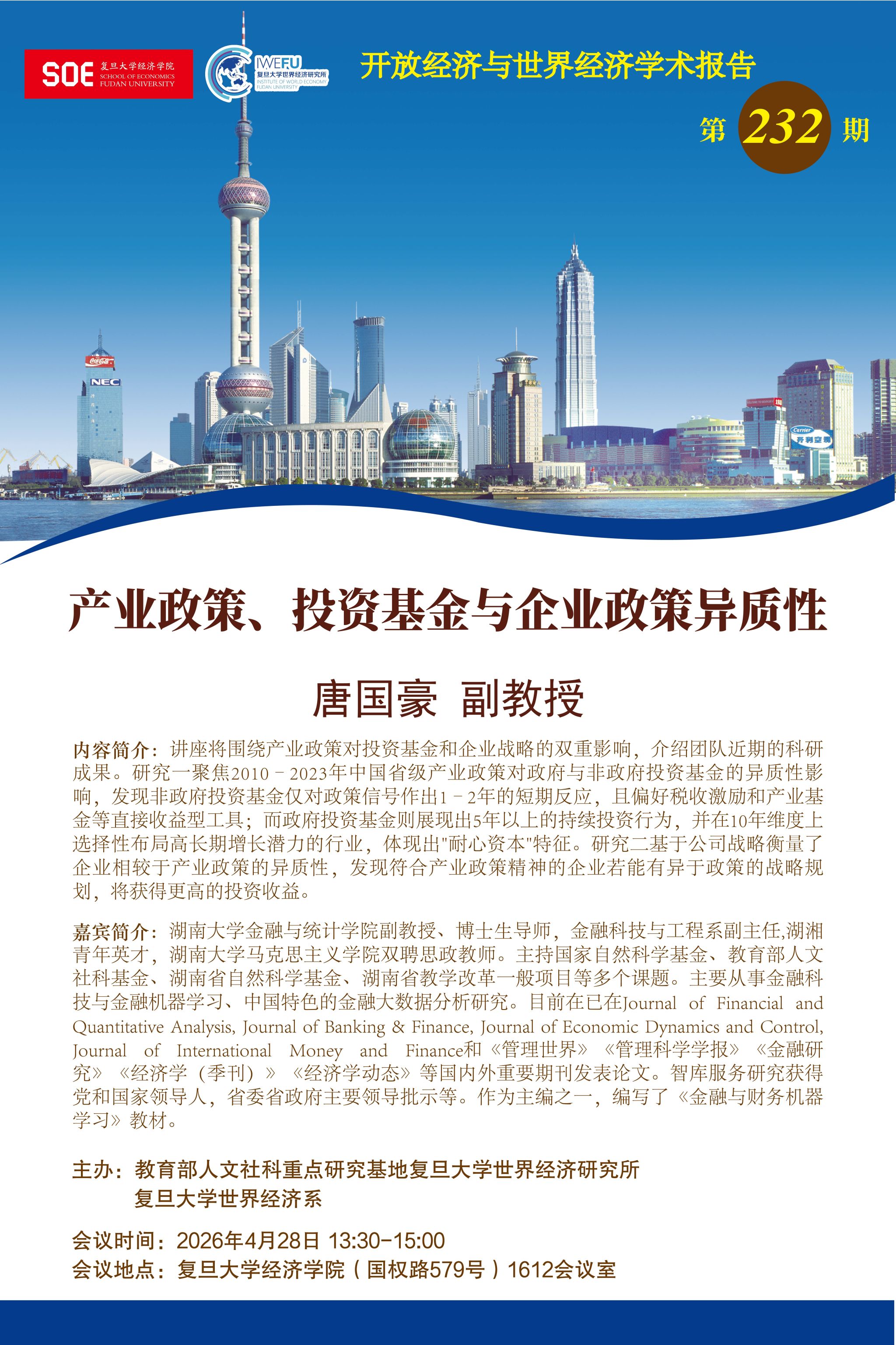 福利姬 世界经济研究所开放经济与世界经济学术报告第232期:产业政策、投资基金与企业政策异质性