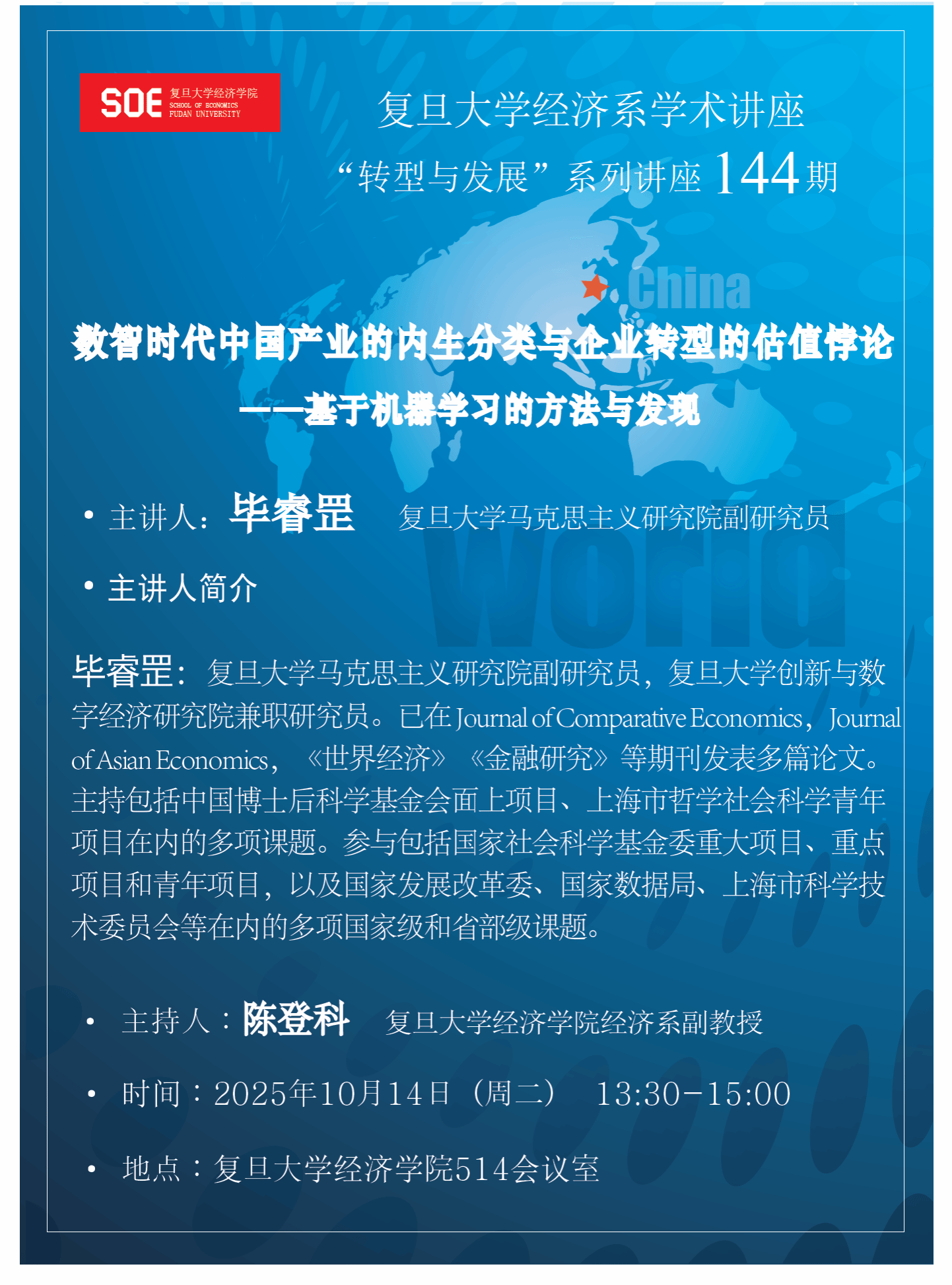 “转型与发展”系列讲座144期:数智时代中国产业的内生分类与企业转型的估值论基于机器学习的方法与发现