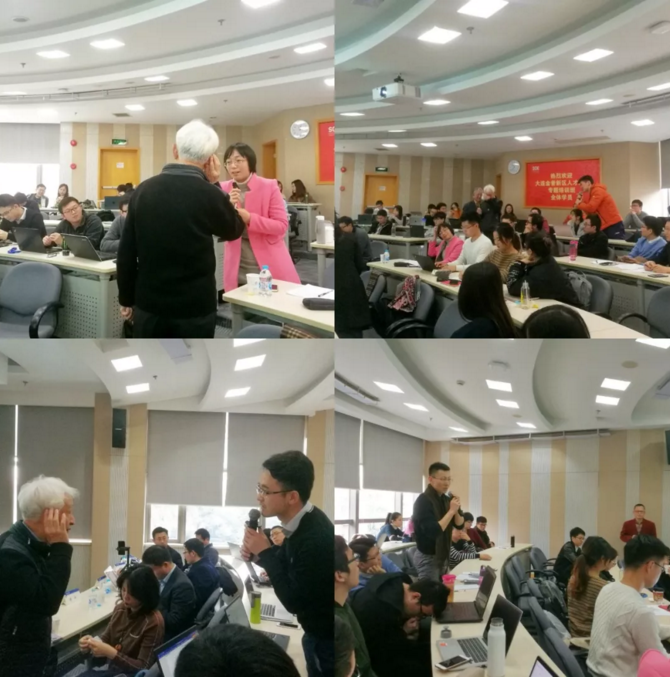 讲座最后,杨青老师点评提到,季先生是茅台发展史上里程碑式的人物,在茅台,他从小季变成老季,到如今的季老师爷子,其精神情怀值得大家学习。在座的同学也积极提问,借此机会与季老师交流学习,季老师均一一耐心作答。张晖明老师在结语中提到,希望同学们能够仔细思考和理解今天的课程内容,将茅台集团作为经典案例,从资本、管理甚至技术层面,梳理、总结资本运作、科学管理对企业发展的重要作用和意义,做一个有高远目标、有思想、有担当、做事精益求精的人。讲座结束后,季老师与张晖明教授、杨青教授及其他嘉宾合影留念。