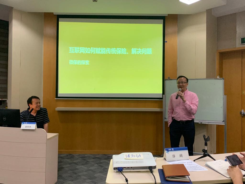 谢邦杰先生从社会面临的亟待解决的问题、互联网赋能传统保险的尝试以及微保案例分享这三个方面展开讲授。