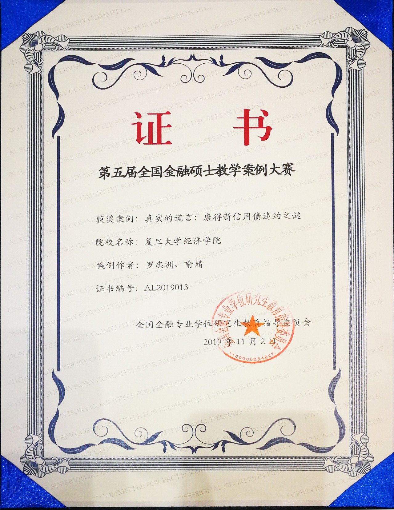 2019年11月2日 上午, 从全国金融专业学位研究生教育工作会议上传出喜讯。