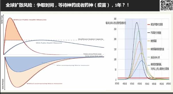 第一个方面是疫情进展情况和疫情轨迹的刻画。邵先生认为,前期对于疫情延误的责任分担还需要更多的科学证据,本次我国对于疫情的应对相比于SARS有所改进,同时欧美国家自我国开始防控起也延误了一个半月的时间。每个国家都有标准的程序做出响应,但是响应之后的效果不能完全控制。本次病毒致死率高于普通流感,传染率高于SARS,且隐蔽性非常强,这导致了防控的困难。如果能够采取社交疏离或城市封闭的政策,可以推迟疫情暴发的高峰期,一方面可以等待药物投入使用,另一方面可以缓解短期内对医疗资源的挤兑,以免造成交叉感染和医护人员的感染。邵宇先生判断,整体而言,疫情高峰可能会出现在二季度,病毒扩散会在三季度告一段落,原因是每个国家执行不同的政策强度,一旦有短板,容易出现死灰复燃的情况。