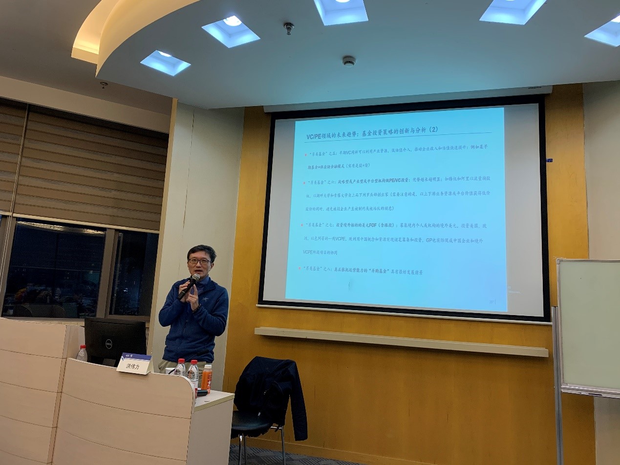本次课程分为三个部分,分别是“VC/PE领域的另类基金”、“未来VC/PE领域的发展趋势”以及答疑环节。洪老师认为,虽然他讲的内容同学们接触的不多,对于同学们来说是理性的认识多于感性的认识,但是希望借此埋下一颗“种子”,能够让同学们对未来的职业生涯有所启发。