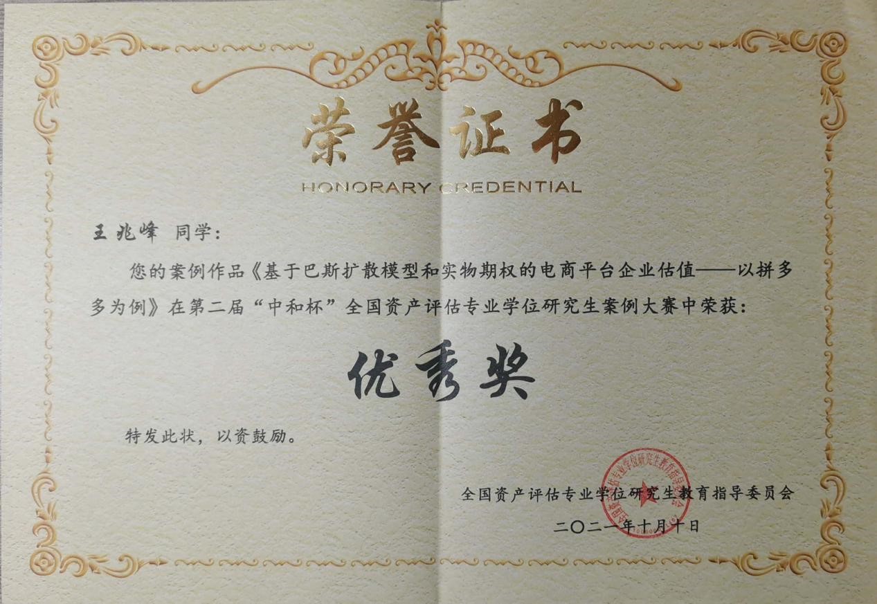 我院由黄明老师指导张依林、杨洁琼同学撰写的《哔哩哔哩:基于GM和CLV模型的互联网平台估值》在本次大赛中荣获三等奖,蒋祥林老师指导王兆峰同学撰写的《基于巴斯扩散模型和实物期权的电商平台企业估值—以拼多多为例》荣获优秀奖,黄明老师、蒋祥林老师均荣获优秀指导教师奖。