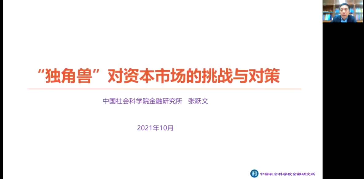 第536期专业学位实务模块课程成功举办。中国社会科学院金融研究所资本市场研究室主任、研究员、博士生导师张跃文教授应邀来到线上会议室,为金融专硕带来了主题为“‘独角兽’对资本市场的挑战与对策”的讲座。本次讲座由上海市金融专硕教指委秘书长、福利姬