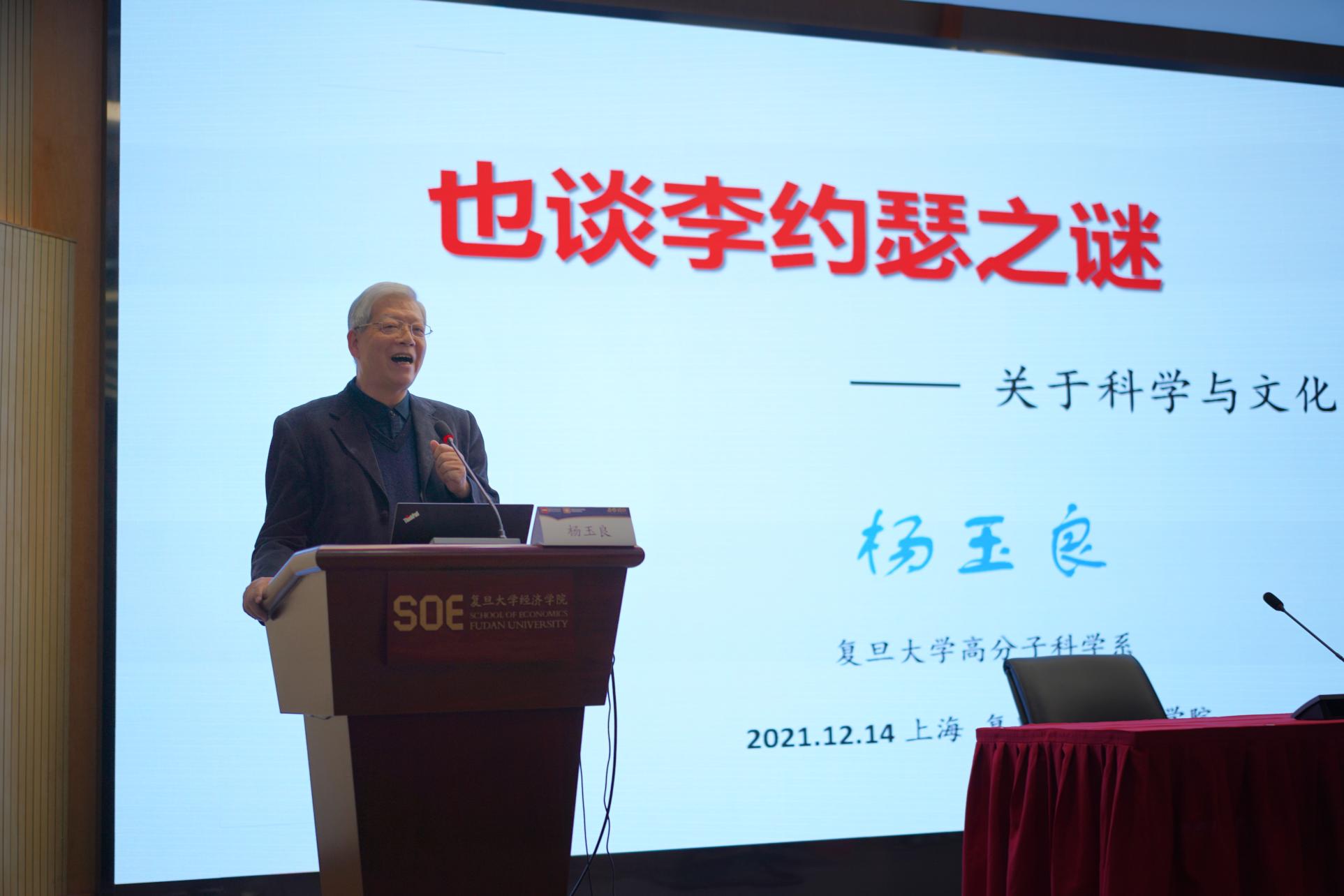 杨院士认为,文化在各个民族中有所差异,文明是人类所共同拥有的东西。科学是一种文明,所以“李约瑟之谜”也即中国文化和现代科学文明之间的差别。杨院士总结了前三次工业革命,认为科学发展之前会有一次文化上的革命,诞生现代科学则需具备丰富的想象力、高超的抽象能力和逻辑推演能力。通过对比“更加具象、理性的古希腊艺术”和“更加抽象、写意的中国古代艺术”,杨院士强调,西方的艺术包含科学,中国古代的艺术更强调内心感受从而忽视了细节的准确性,这种思维方式的差异阻碍了中国近代科学的诞生。