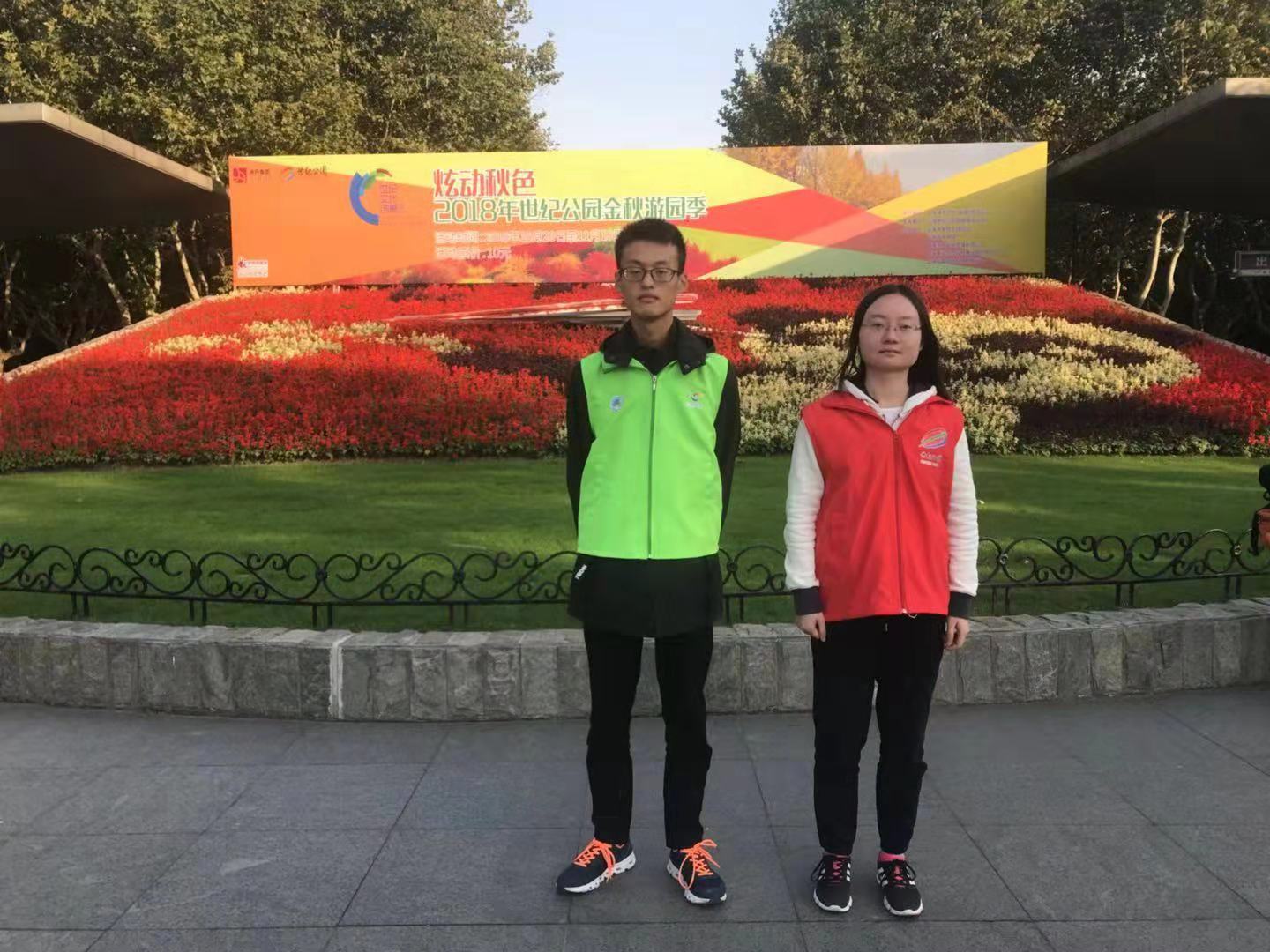 陈真蔚同学说:“在‘世纪公园’志愿者活动中,我主要负责在公园入口处维护秩序和回答游客们的疑问。周末阳光温暖,世纪公园树木葱茏,红叶茂盛,游人如织。我为中外游客们讲述购票方式,指引道路,帮他们寄存行李。能够帮助儿童,老人,外国人等游客让我很开心,世纪公园志愿者活动真的很有意义。”