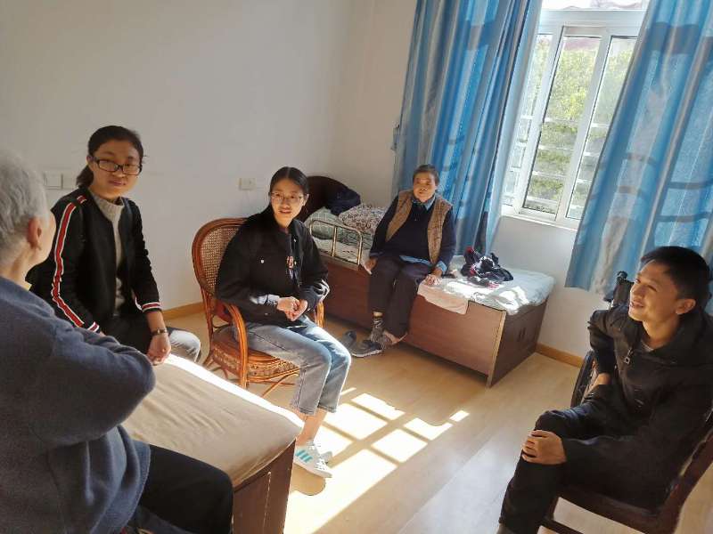 张珈玮同学已经不是第一次参加本活动了,她回忆道:“今天又去了养老院。我去见了上次和我聊天的那位老奶奶,然而她好像已经不记得我了,拉着我说了很多上次说过和没说过的事。我们一起走到阳台上看学校的操场,她说她经常来这里看年轻人锻炼。我很高兴还能见到这些之前见过的老人们,陪他们聊天真的很幸福。”