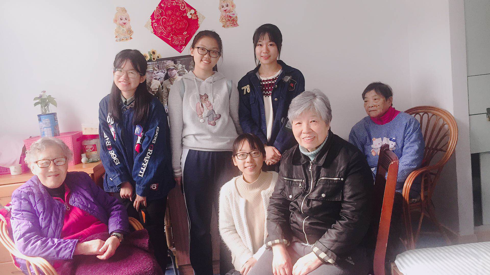 上午九点左右,同学们在负责人的带领之下来到世纪养老院。本次活动共有13名团校学员参加,大家在自由结合分为三组之后进入到各个楼层探望老人们。志愿者们进入老人们的房间,陪老人看电视,和他们聊一聊我们的生活,聊一聊彼此这几天的趣事,与老人之间的距离也在这一句一句的交流之间拉进了。有些同学还遇到了喜欢戏曲文化的老人,并与他们积极交流,气氛温暖融洽。虽然有的同学可能不太会说上海话,说起来磕磕绊绊的,但这并不影响他们与老人交流话家常。志愿者们以这种方式给老人们平淡的生活带去一些欢乐,也让他们感受到为人子者的关怀。为了不打扰养老院老人们的午饭时间,这次活动持续了短短的一个半小时就结束了。志愿者活动结束后志愿者们也纷纷与老人合影留念。