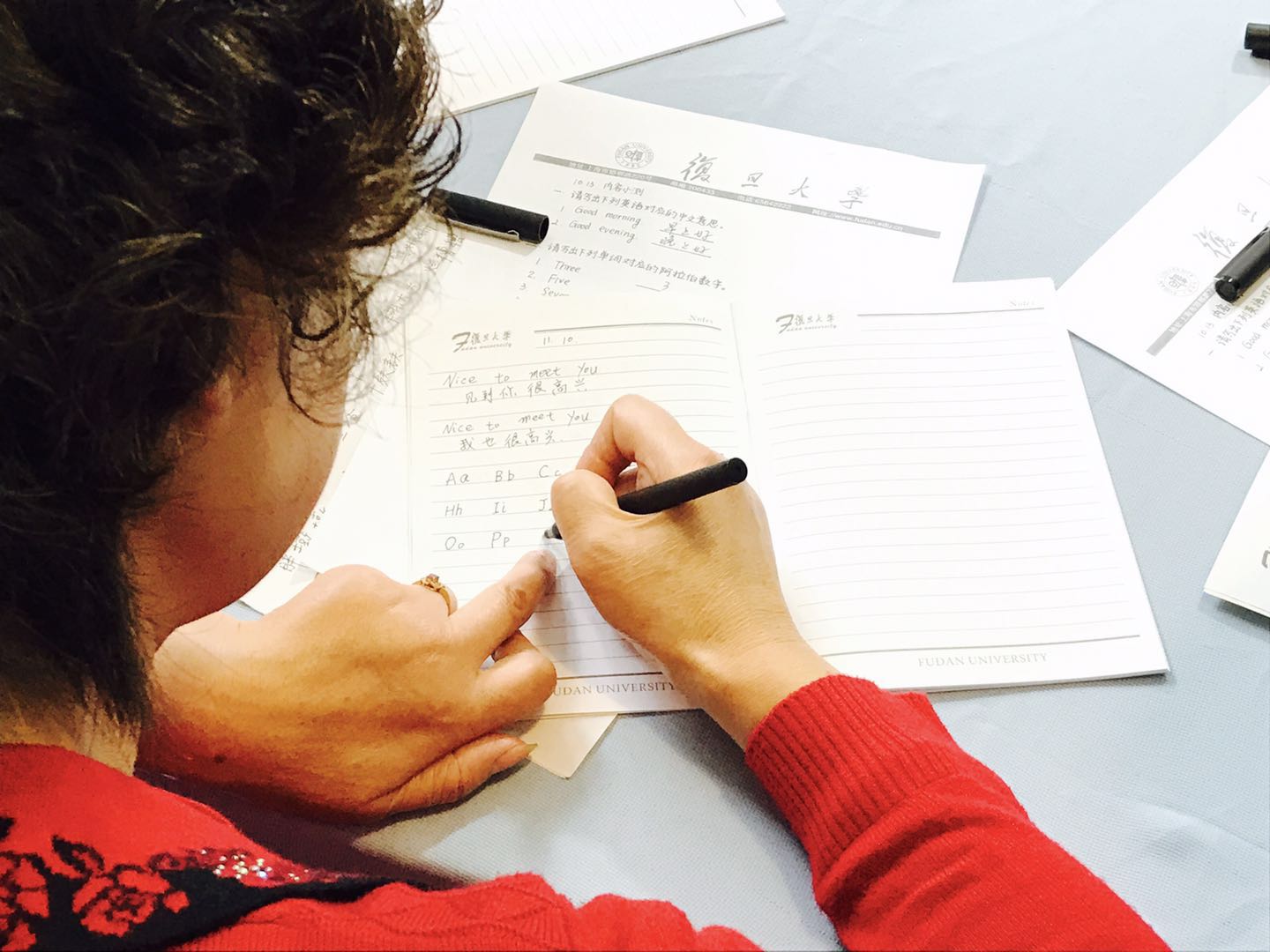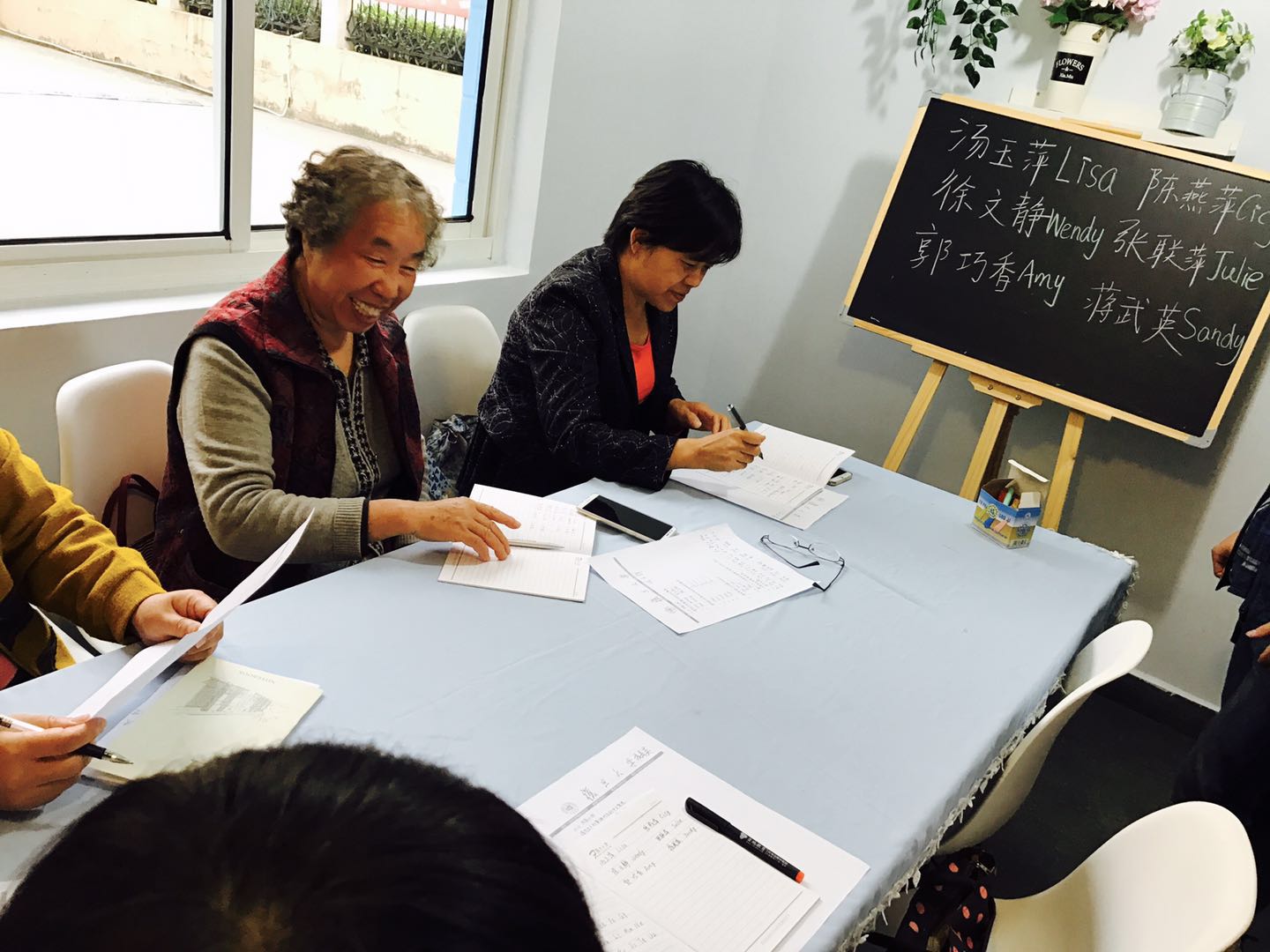 更是让人倍感亲切。老人们围坐在桌边认真记笔记、口中重复着夹杂着上海口音的英语念念有词的模样最打动我,让我深刻地体会到了“活到老、学到老”的精神。