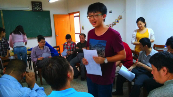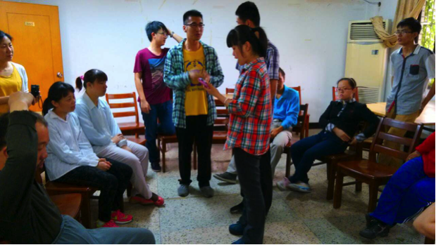 首先,志愿者们做了简短的自我介绍,并邀请学员一同歌唱。一位积极的学员主动要求上台唱歌,受到了大家的热烈欢迎。接着,学员与志愿者又合唱了歌曲《甜蜜蜜》,短短几分钟内歌声就拉近了志愿者同学员之间的距离,为之后的活动打下良好的基础。
