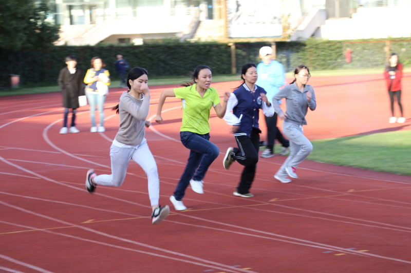 多足虫比赛中,体育老师一声令下,几支队伍就“一二一二”地开始蹲地前行,男女交替,男生排头,全队协同一致。同学们怕队伍在行进中断开了,无一不死死抓住前方队员的肩膀或腰,几乎要把衣服拽下来。冲过终点后,队员们艰难地起身,欢笑声中似乎又混杂着惨叫,特别是那些走的卖力的同学,纷纷捂住自己的大腿。最后获得第一名的是16经院二班,获得了27’02的佳绩。