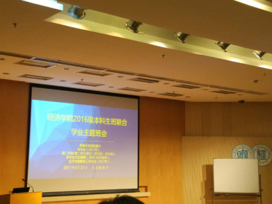 在同学们的热烈掌声中,主题班会有序地开始了。15级思源计划的两位学长走上讲台,用自己的切身经历鼓励同学们踊跃报名该计划,激发了听众的热情。学长们的宣讲结束之后,16级经院2班辅导员澹台文赟老师向大家详尽地介绍了第二学期转专业以及第二学位的相关情况,并以自己的亲身经历让大家了解自己到底是不适合转专业和修读二专,成功让在场的所有人明白了相关流程和难度。