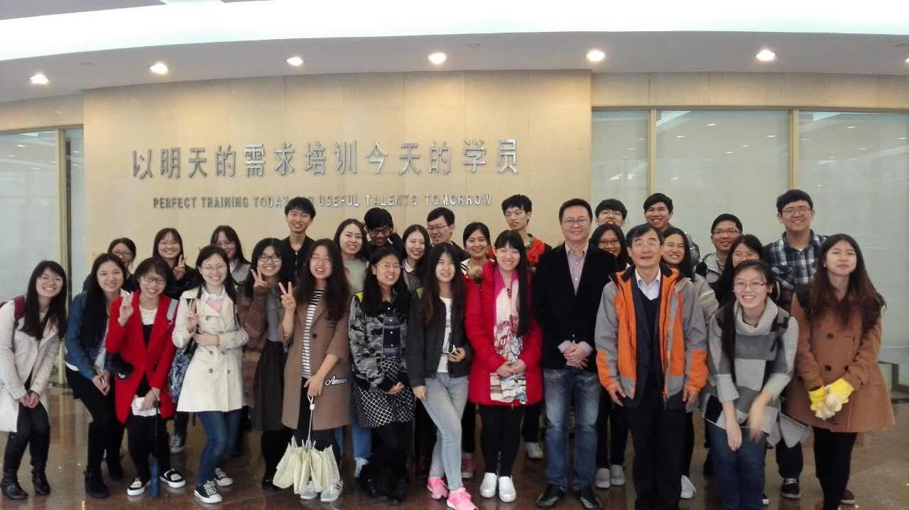 到达职业培训指导中心后,首先由中心的一位老师向大家介绍中心的基本信息。上海市职业培训指导中心是上海市劳动和社会保障局的直属事业单位,是对本市职业培训工作提供指导和服务的公益性机构。听老师讲述之前,在同学们的固有印象里职业培训中心是类似于家政中心、美容美发培训学校或者是烹饪学校一类的培养技术含量低的工种的培训机构,实则不然,它围绕上海的经济发展和市场需求,在以高技能人才培训为主,如培养使用国外引进的高端机床的高级技工、品茶师、珠宝鉴定师等。