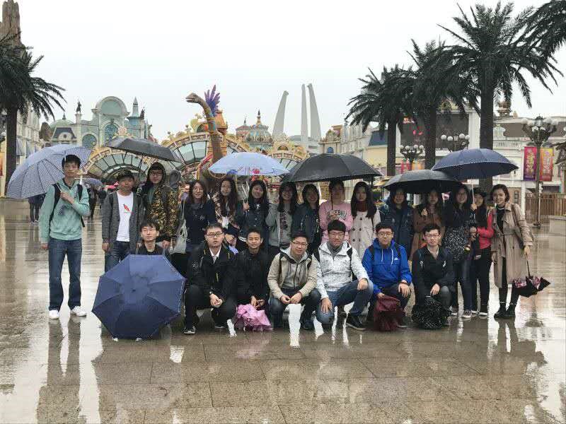 10月29日,我们财政保险班的同学们前往常州恐龙园开展秋游活动。当日清晨,上海气温骤降,一路上细雨纷纷,这不禁令同学们有些小小的担忧。一到常州,气温稍有回升,不过仍旧有雨,好在同学们热情高涨,彼此共撑雨伞,在常州恐龙园入口处来了张和谐的“雨中共伞图”!