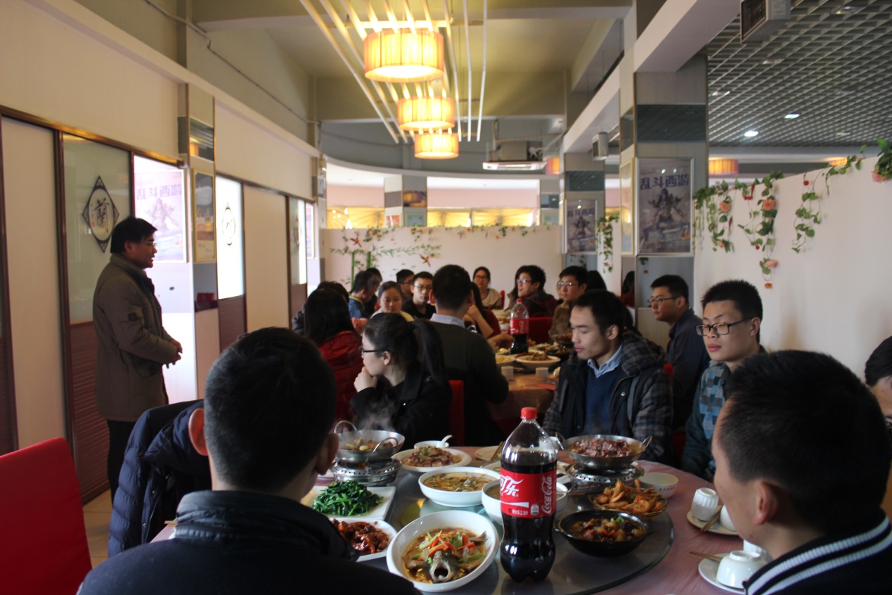 此时,经院的老师、辅导员以及其他一些同学也陆续到来,不少人兴奋地加入了包饺子的行列,颇露了一手,赢得大家的好评。很快,饺子皮和肉馅已尽,餐厅的服务员帮助同学们将饺子下锅,大家围着桌子团团坐,石磊老师做了饭前讲话,幽默的话语将气氛带到了高潮,在一片鼓掌声中,大家纷纷动筷,尽享聚餐的快乐。不一会儿,饺子上桌了,大家迫不及待地品尝自己的劳动成果,“这一定是我包的”“那可是我包的”,人人脸上笑开了花。
