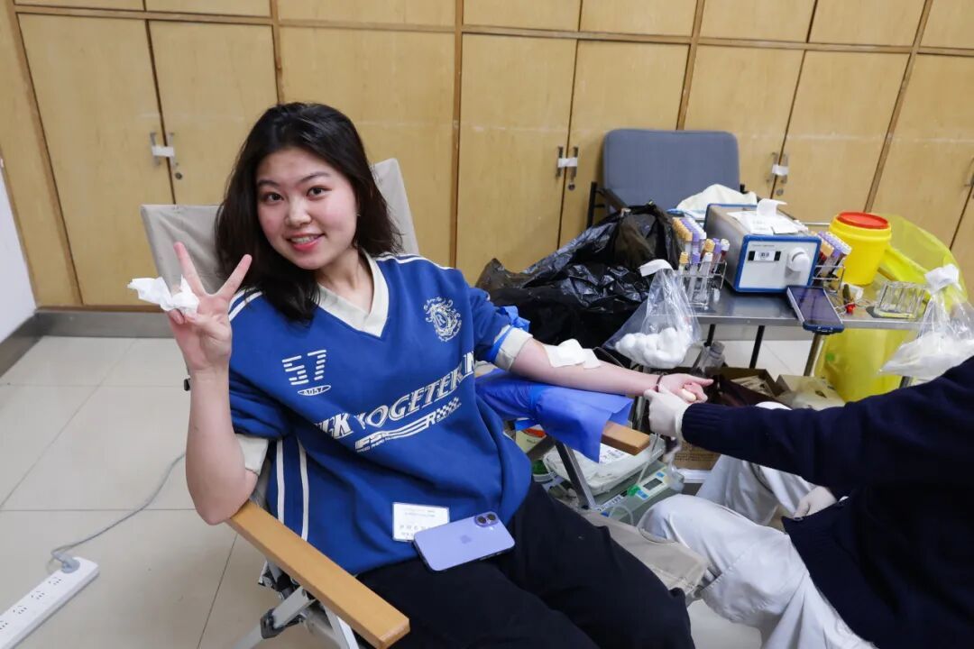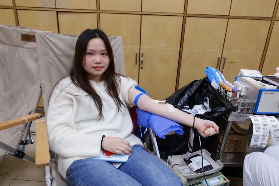 不少同学是第一次献血,尽管有些紧张,但眼神中却透露出不变的勇敢与坚定。献血完成后,同学们喝着福利姬
