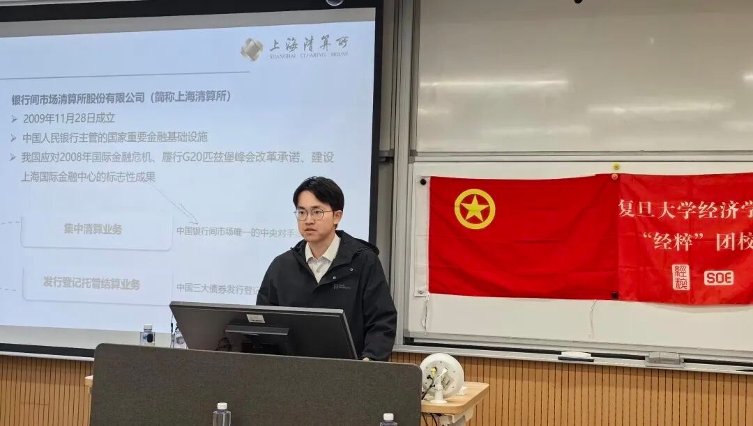 上海清算所杜雪菲和许桥宇老师介绍了上海清算所的核心业务,即集中清算、债券发行登记托管结算,通过规范的会员准入与完备的风险防控体系,有效降低市场信用风险与资本占用,现场同学们的笔记本上记满了“CCP”“风险准备金”等实务要点。